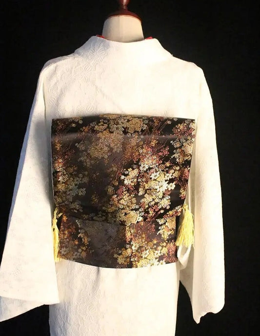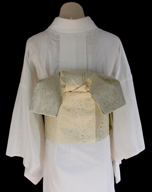 White Pre-Tied Brocade Obi Yukata Waistband