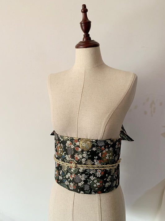Black Pre-Tied Brocade Obi Yukata Waistband