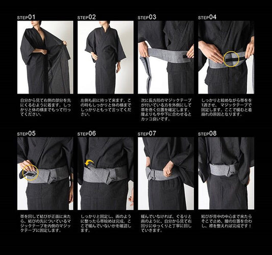 Men Black Yukata Obi Waistband