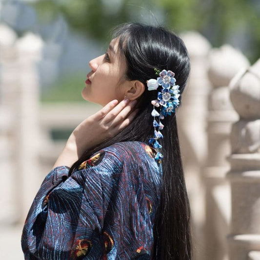 Handmade Tsumami Kanzashi Hair Clip 3 Piece Set 【Blue & Purple Sakura】