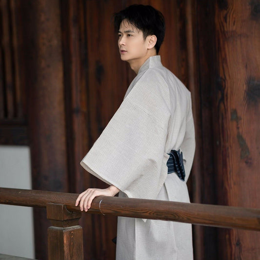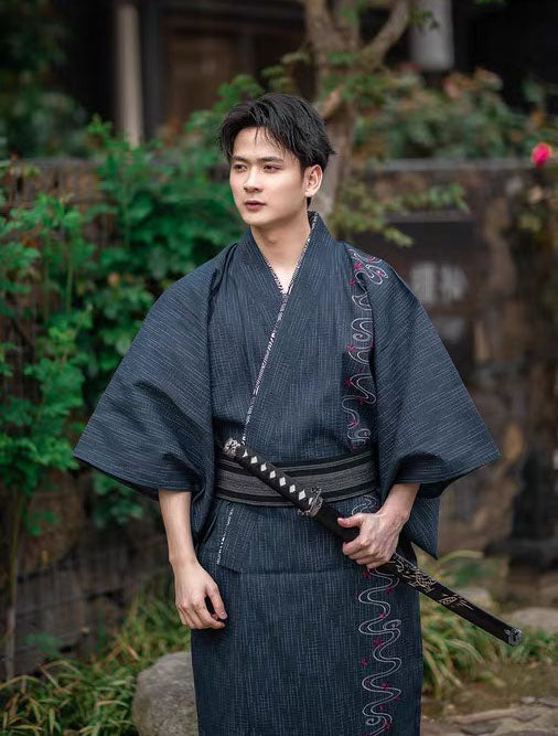 Our men Yukata features a traditional and classic design. Crafted from breathable and soft cotton fabric, this Yukata ensures comfort throughout the day or night. Comes with a matching Obi belt and a pair of tabi socks.