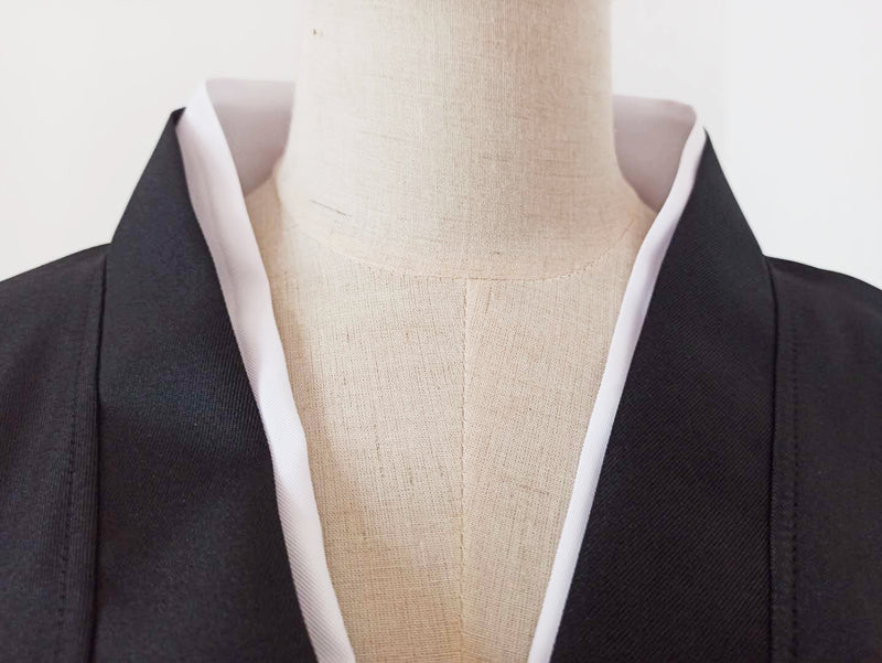 This eye-catching kimono set includes a sleek black kimono top paired with wide-leg hakama pants, providing both comfort and ease of movement. It's perfect for martial arts practice, cosplay, or cultural events.