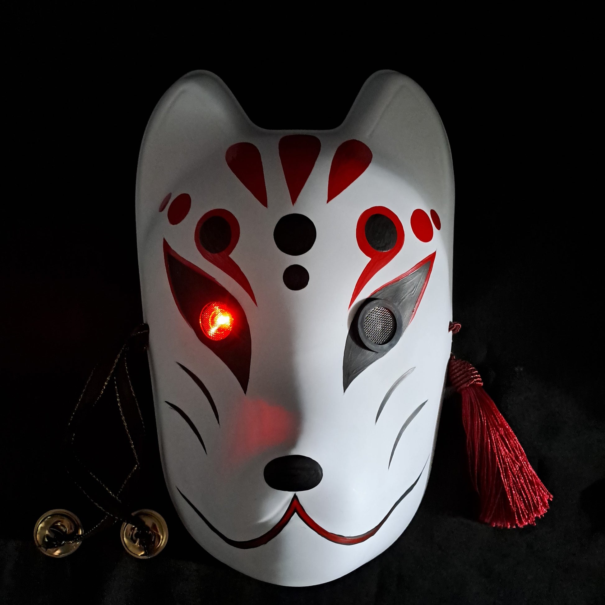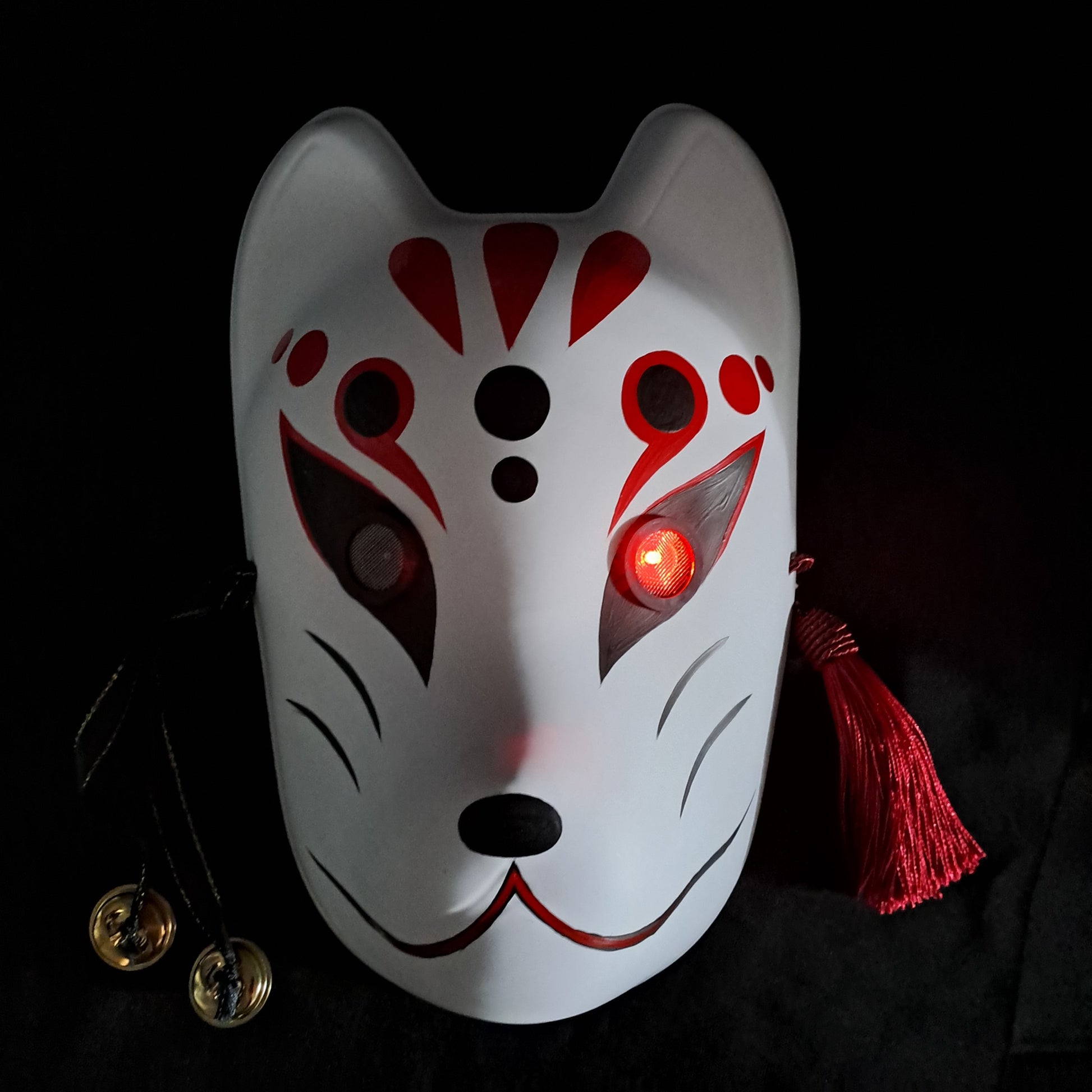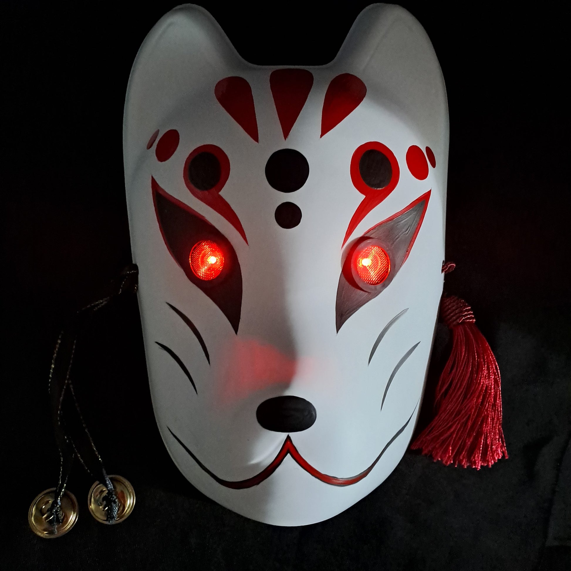 This fox mask is the perfect accessory if you bleed the Halloween spirit. The red stripes, dots on forehead and face make it a spooky feeling. It's perfect if you wear it at side of head with a gore make up.