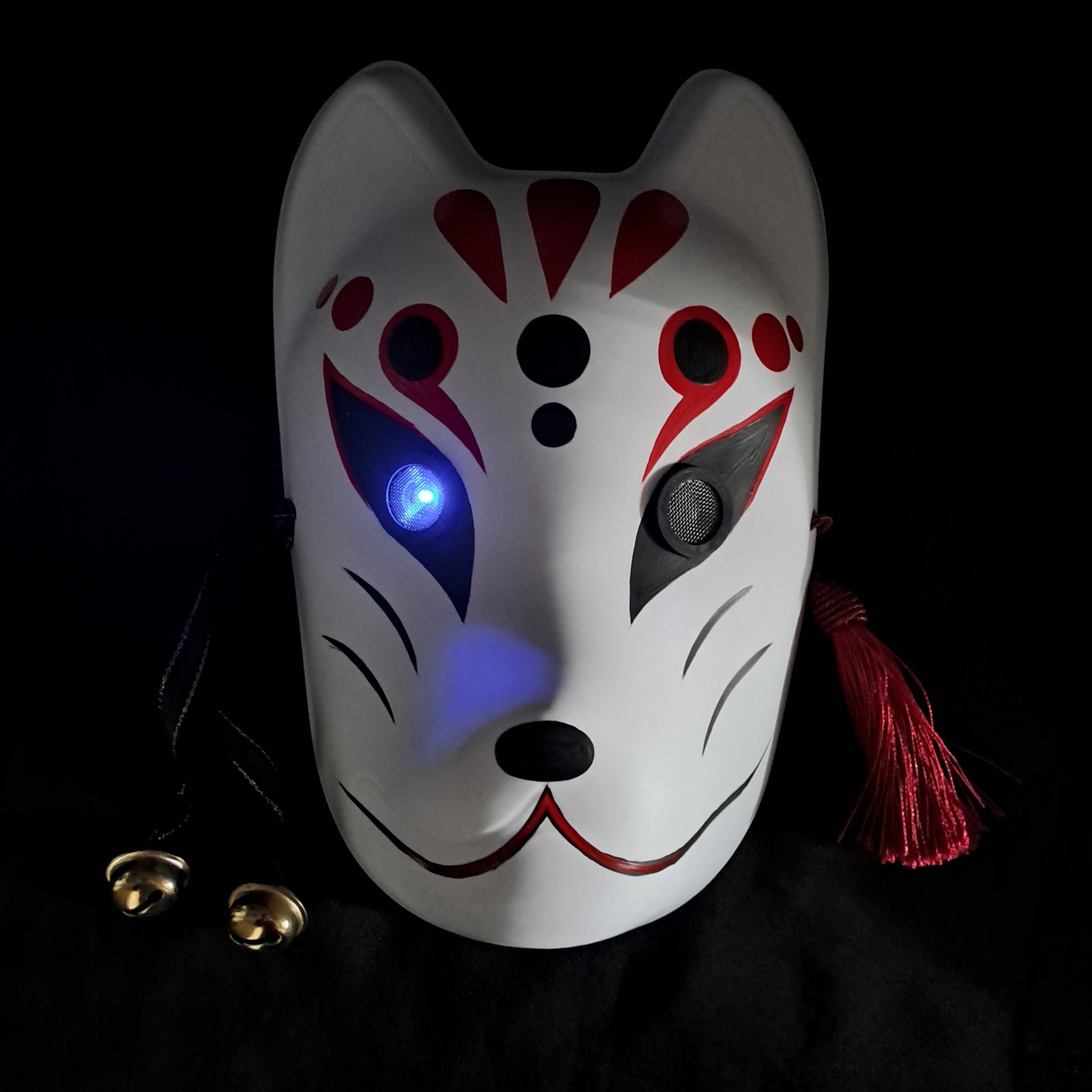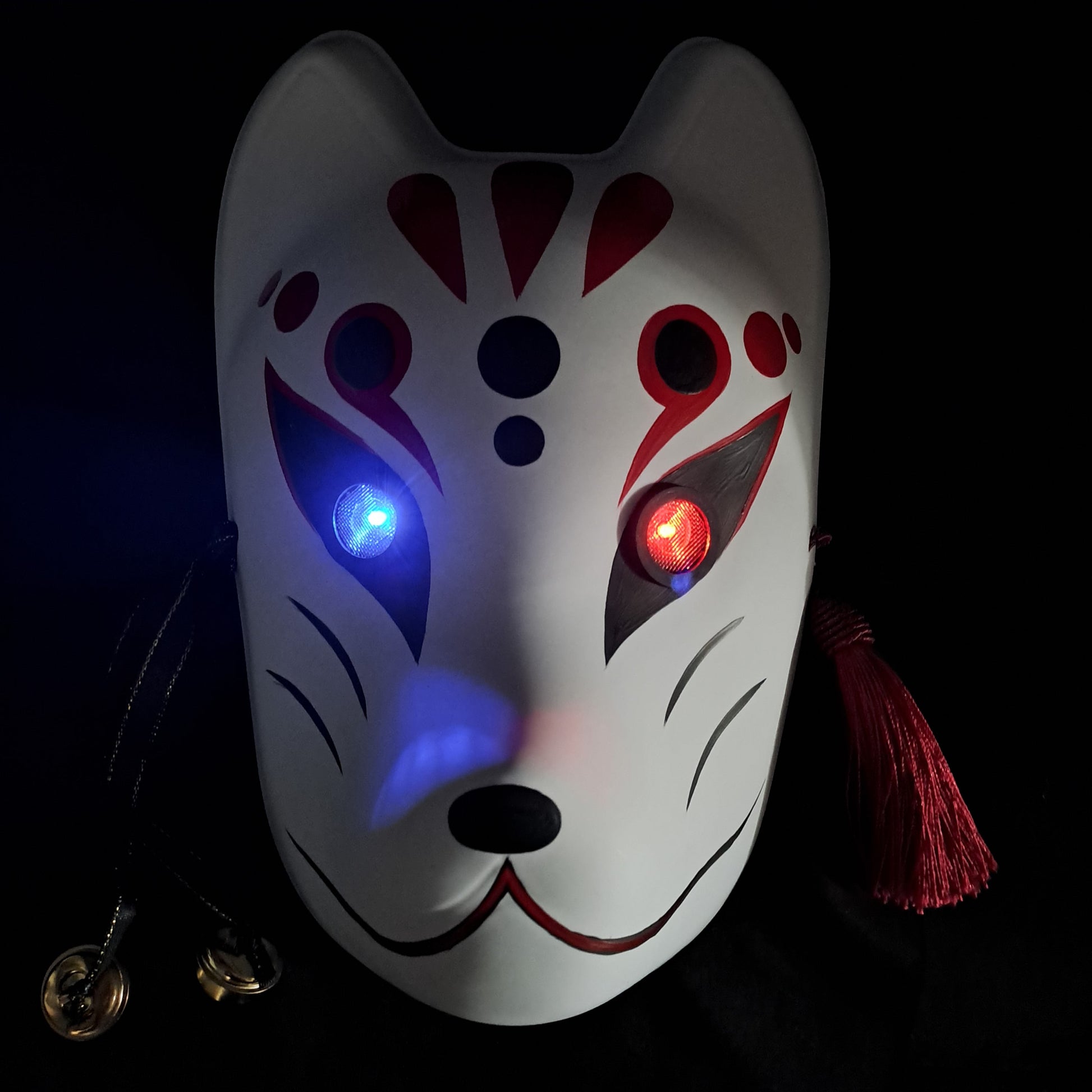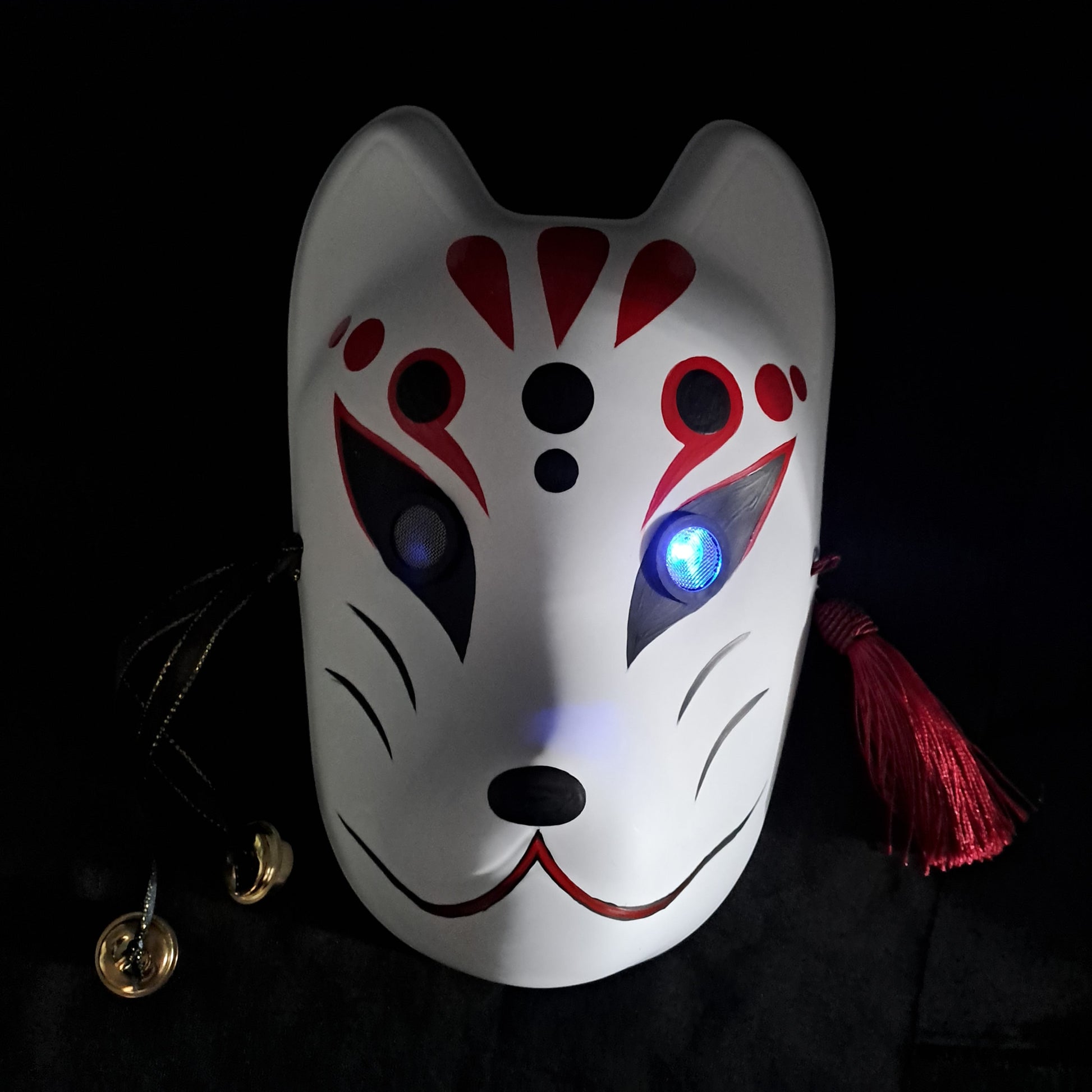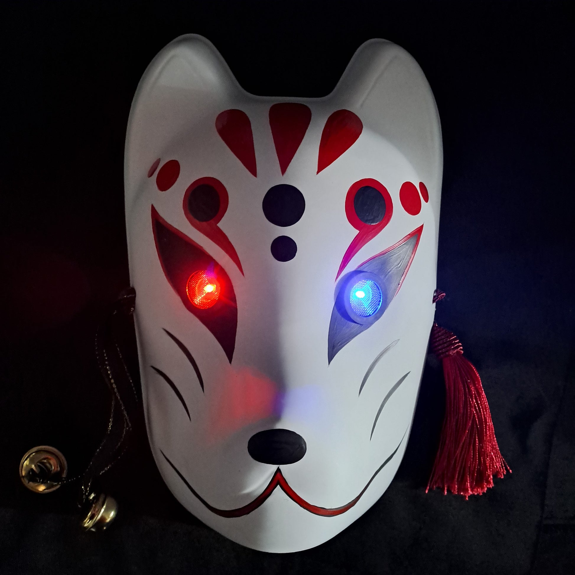 This fox mask is the perfect accessory if you bleed the Halloween spirit. The red stripes, dots on forehead and face make it a spooky feeling. It's perfect if you wear it at side of head with a gore make up.